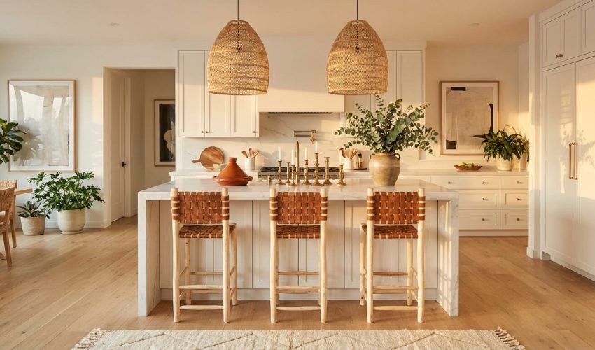 Transform your kitchen island from functional workspace to design statement with authentic Moroccan accents. Discover how handwoven leather seating, artisanal terracotta ceramics, and natural fiber pendant lighting create an inviting centerpiece that blends global craftsmanship with contemporary style.