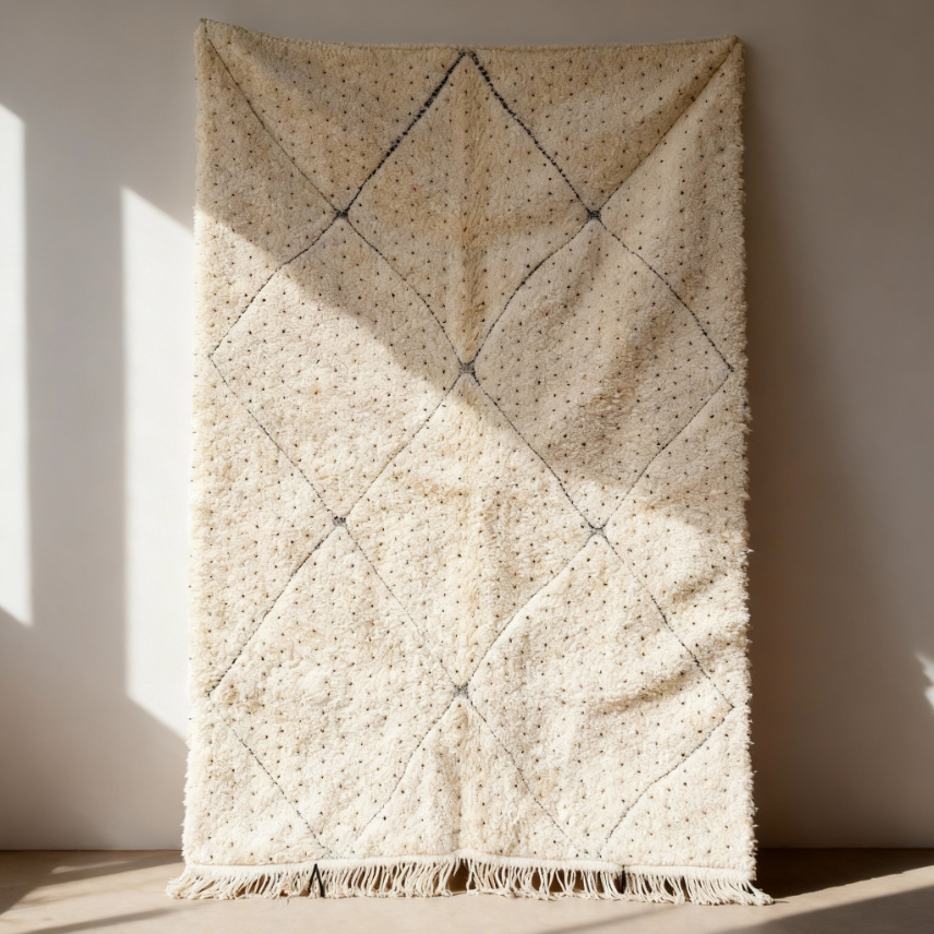 Add a chicly earthy touch to your floor with this Moroccan shag rug. Sourced from ethically and sustainably sourced farms, this hand-knotted rug features a pocketless design, giving it an effortless flowing edge. With an organic, cotton-blend build and undyed wool, this rug is perfect for natural-leaning homes.