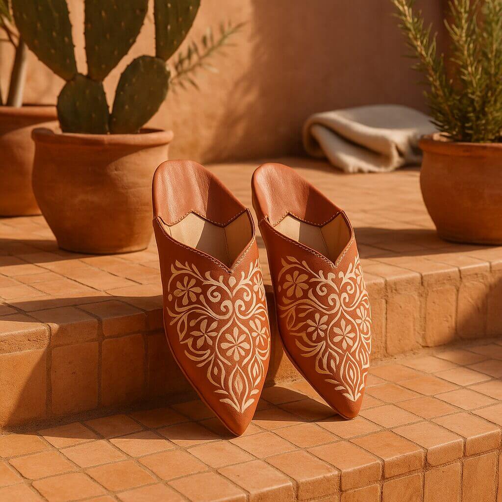 Luxury Engraved Leather Moroccan Babouche Slippers – Handcrafted