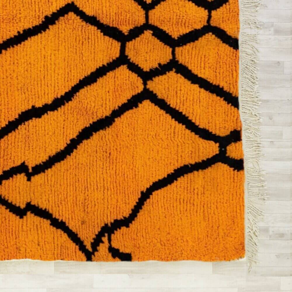 Handwoven Geometric Moroccan Wool Rug – Vibrant Orange with Black Pattern