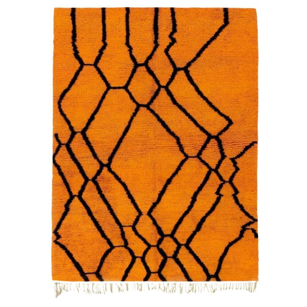 The vibrant orange tone creates immediate visual warmth, while the geometric pattern adds sophisticated depth to any design scheme. Discover complementary pieces by exploring our complete collection of Moroccan Rugs.