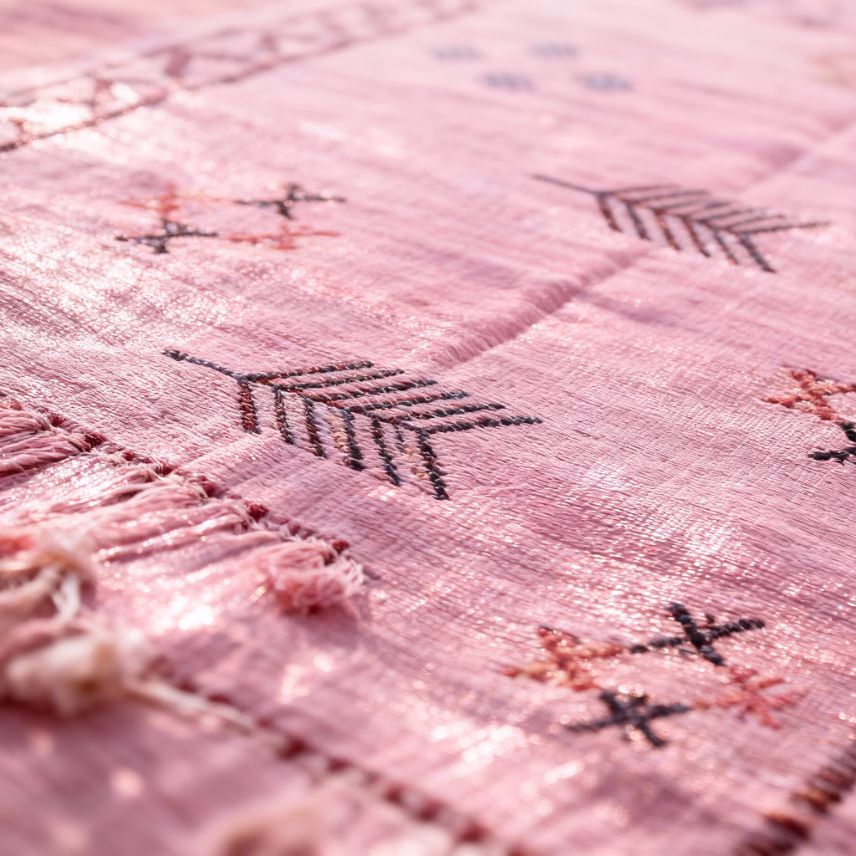 Rotate your rug periodically to ensure even wear and preserve the beautiful pink coloration. For comprehensive maintenance guidance specific to cactus silk and mixed-fiber rugs, consult our expert Moroccan Wool Rug Care Guide which provides detailed instructions for preserving your investment for generations.