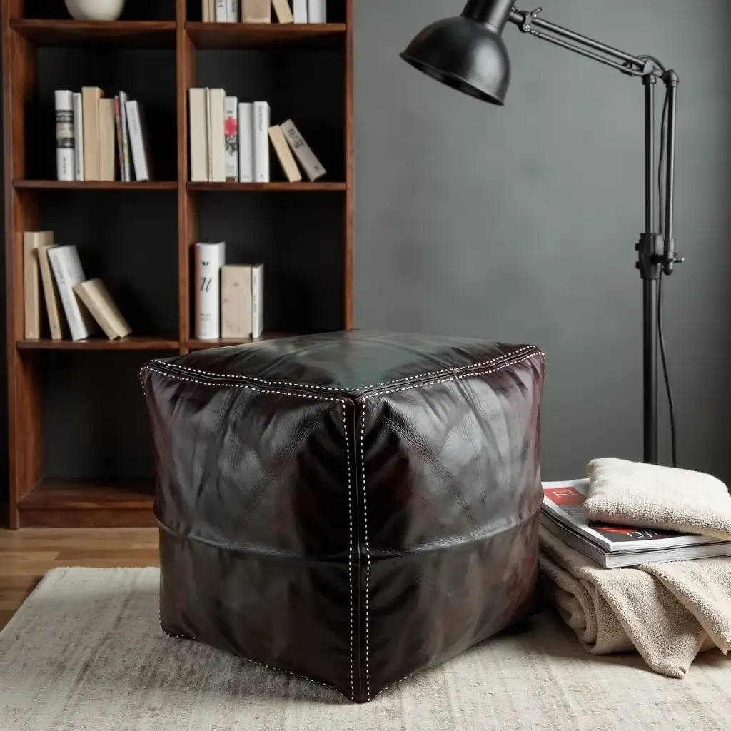 This square leather floor ottoman delivers exceptional versatility in a compact 16-inch footprint. Whether you need extra seating for unexpected guests, a comfortable footrest after long workdays, a meditation cushion for mindful practice, or a sturdy base for serving trays, this leather floor pouf adapts to your lifestyle. The space-saving cube design fits perfectly in studio apartments, reading nooks, home offices, and bohemian living rooms where every square inch matters.