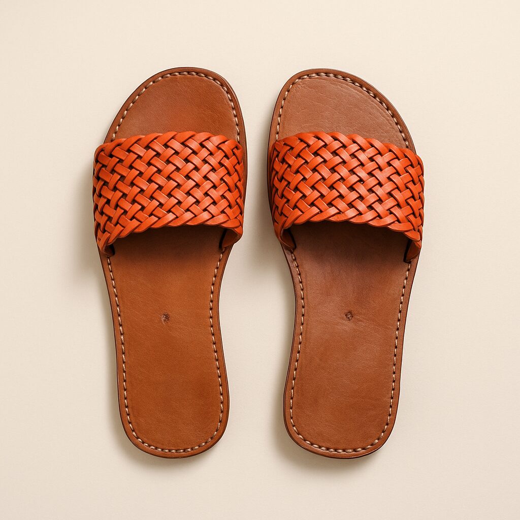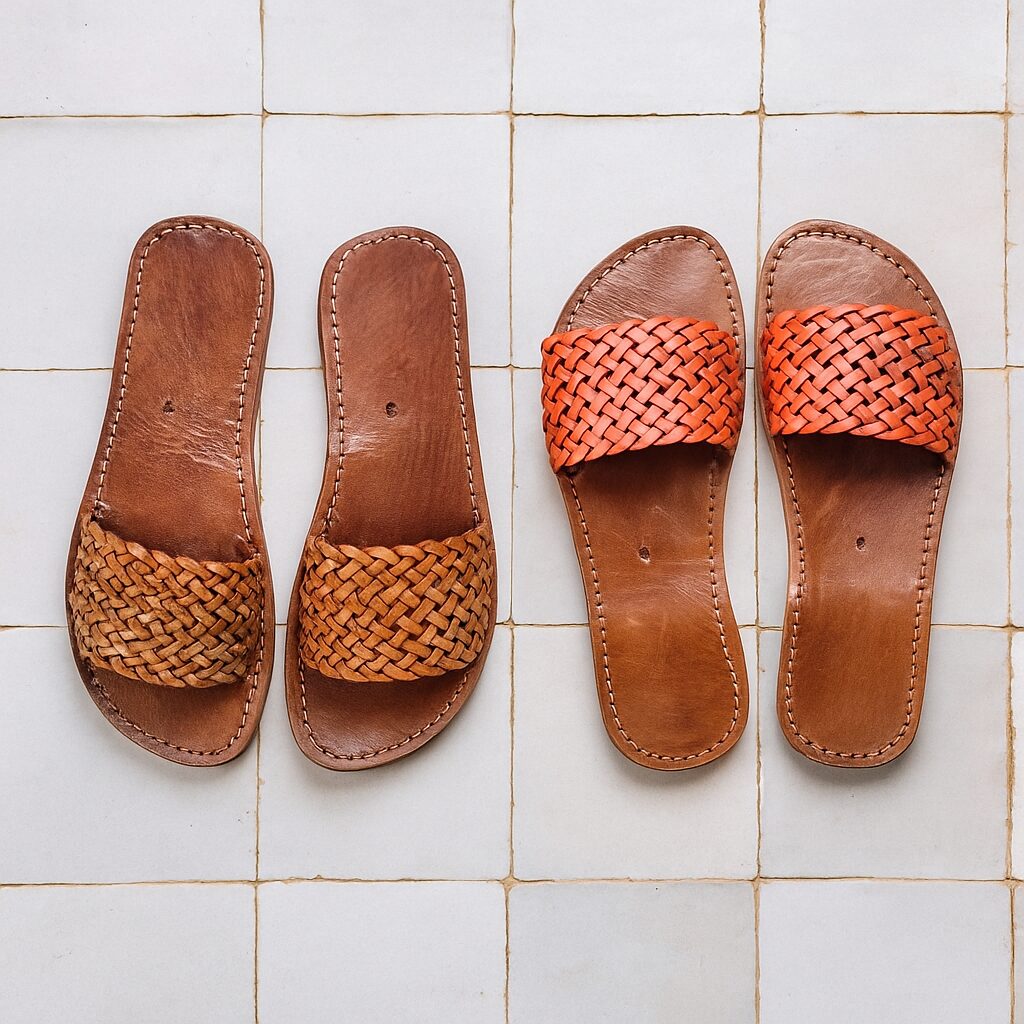 In the hidden courtyards of Marrakech, master maalem artisans braid supple goat hide into intricate lattices—a skill passed from parent to child for generations. Your new Leather Slides carry that legacy. Each strap is individually woven, then hand-stitched to a cushioned leather sole before basking beneath the Moroccan sun to achieve its warm patina. Discover the craft’s journey in Morocco’s Traditional Leather Industry.