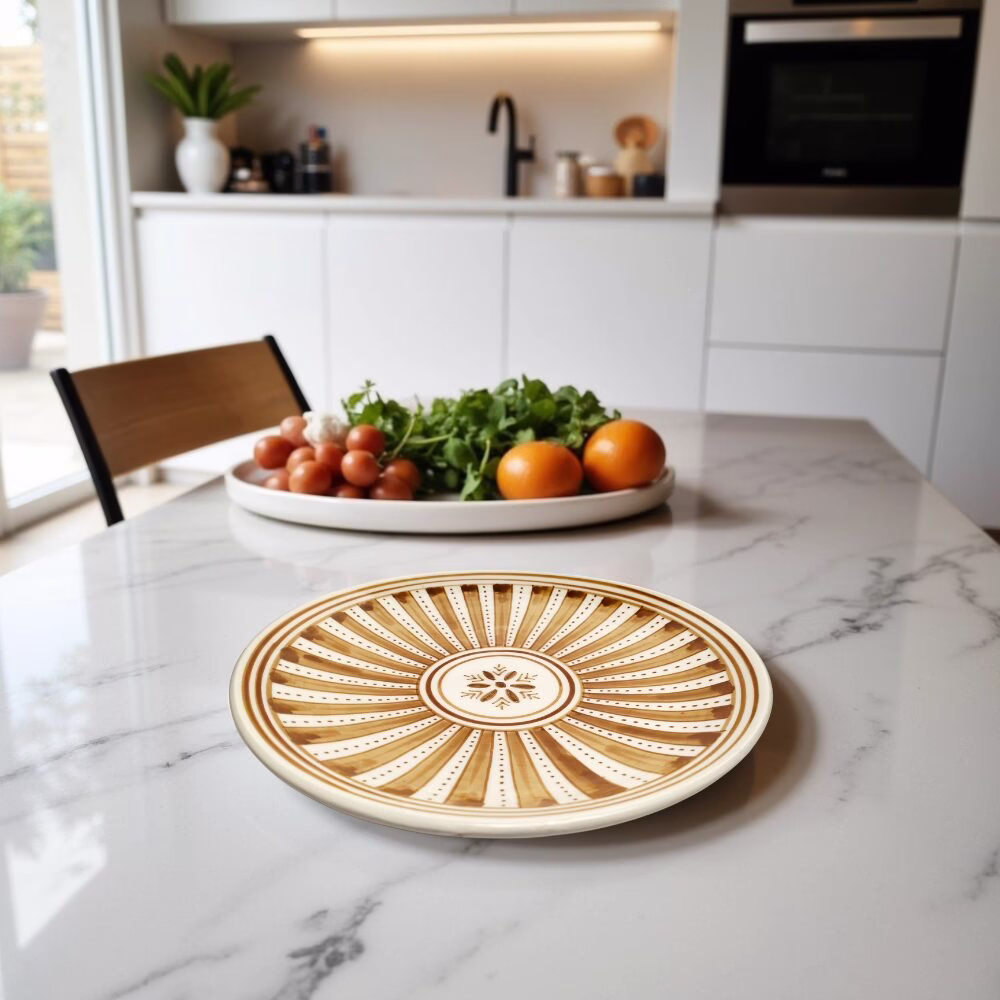 The hand-painting process ensures that every plate is truly unique, with subtle variations in brushwork and pattern details that celebrate the authentic artisanal nature of this exceptional ceramic plate painting technique. Natural imperfections and slight asymmetries are hallmarks of genuine handmade craftsmanship.