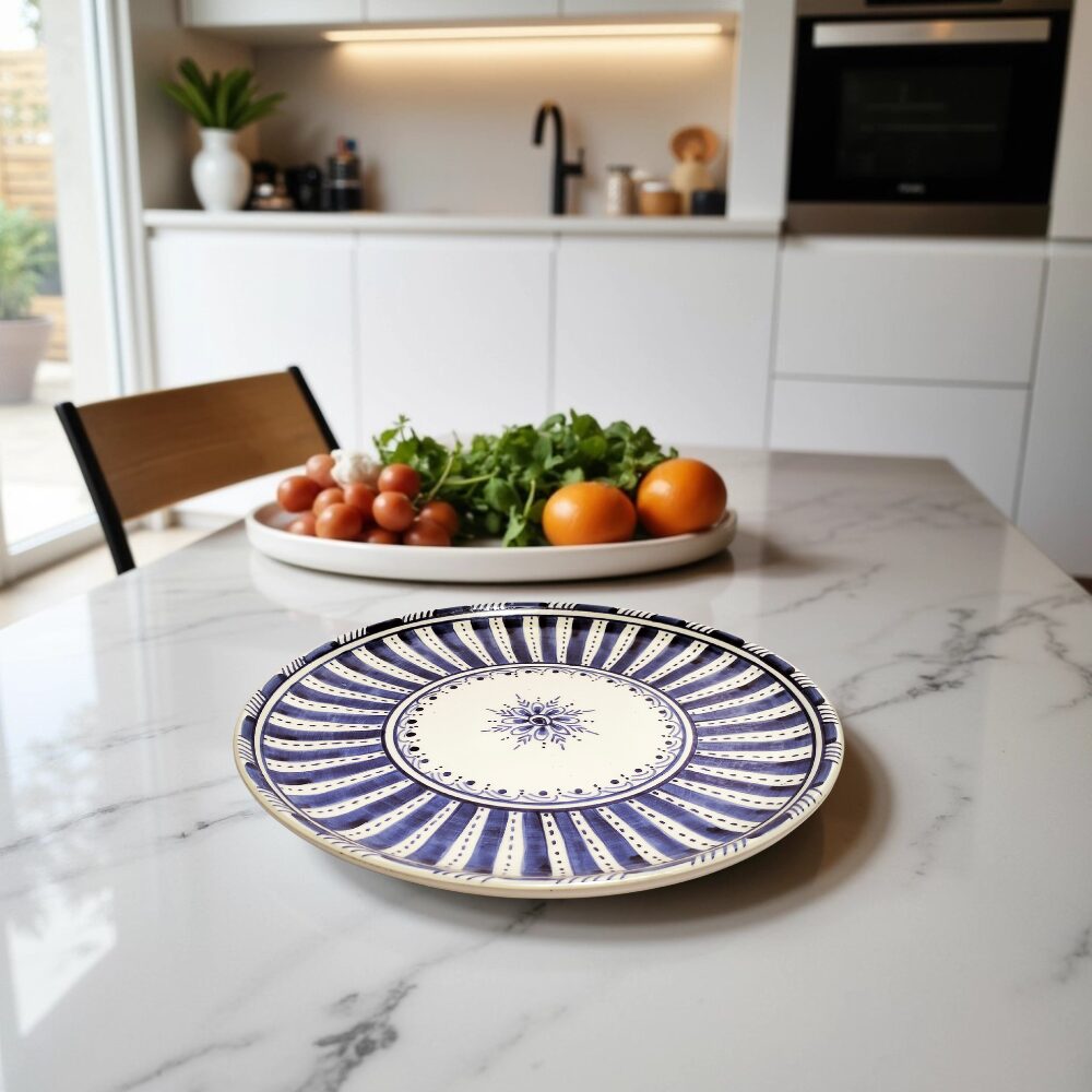 The hand-painting process ensures that every plate is truly unique, with subtle variations in brushwork and pattern details that celebrate the authentic artisanal nature of this exceptional ceramic plate painting technique. Natural imperfections and slight asymmetries are hallmarks of genuine handmade craftsmanship.