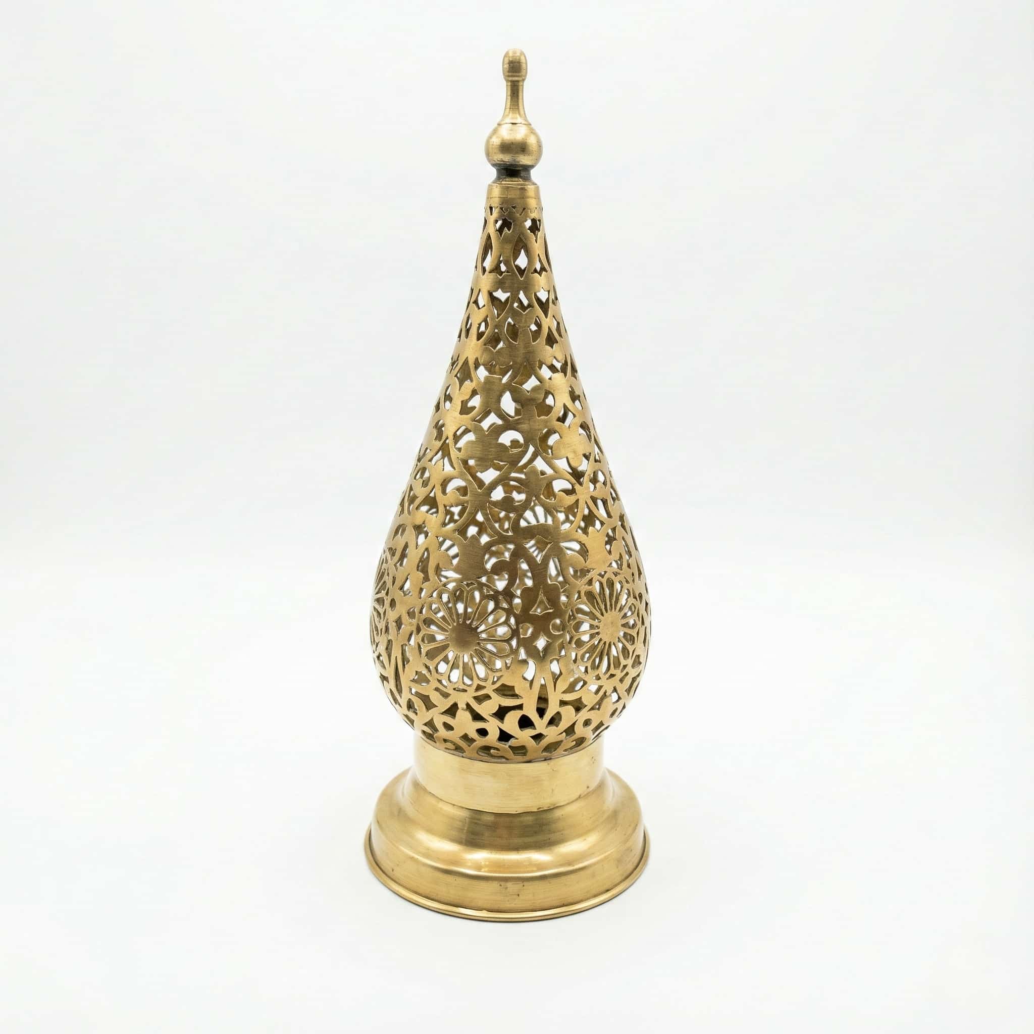 Hand-Engraved / Perforated Lamps: These are our most traditional and iconic pieces. An artisan uses ancestral techniques to hand-punch and engrave intricate geometric or floral patterns into the brass. Choose this style if you want the 'shadow pattern' effect and a lamp that serves as a stunning piece of cultural art.