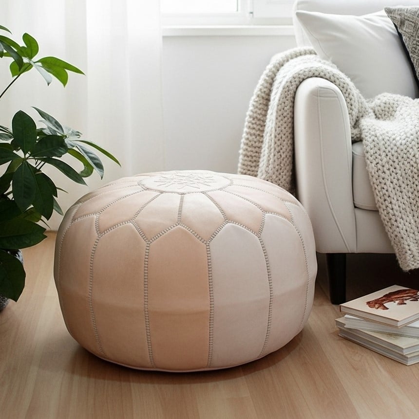 Natural Leather Floor Ottoman 21″ – Handcrafted Undyed Tan Round Pouf