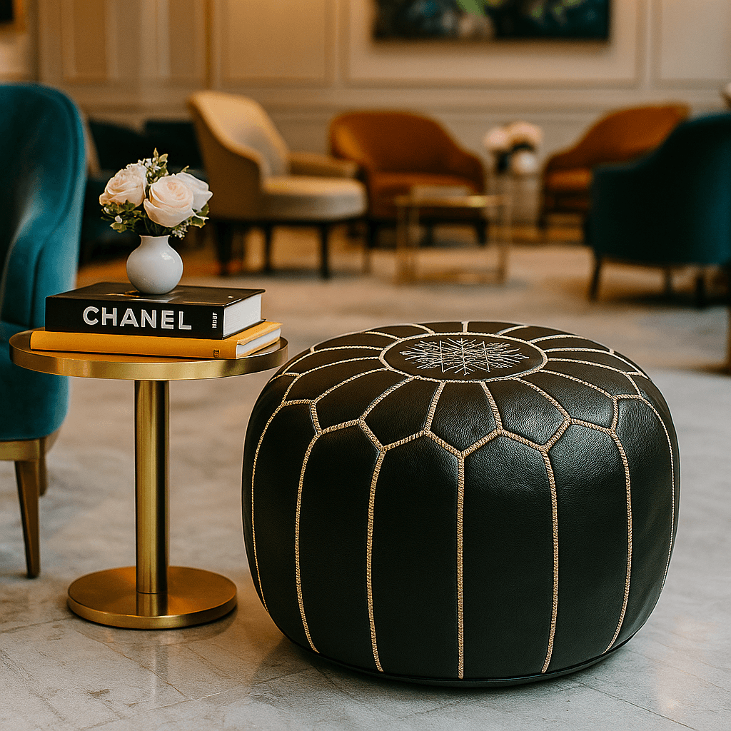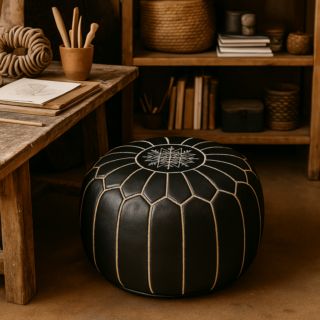 This black leather floor ottoman is available for bulk orders and is ideal for boutique hotels, yoga studios, wellness centers, and designer residential projects. Our wholesale program offers consistent quality, authentic artisan sourcing, and trade pricing for design professionals. Whether you’re furnishing a bohemian boutique hotel or creating flexible floor seating for a meditation studio, our handcrafted pouf collection delivers the authentic style your clients desire. Contact our wholesale team for volume pricing and project consultation.