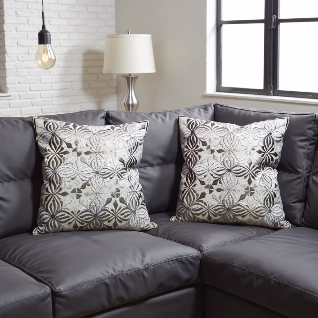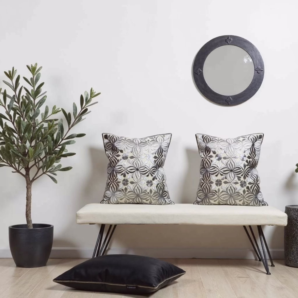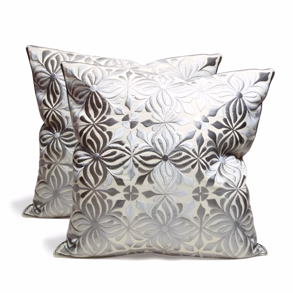 These authentic Moroccan pillow covers showcase the masterful skill of our artisans through intricate floral embroidery patterns. The refined gray colorway creates a sophisticated raised design that catches light and adds dimensional interest to any room. Crafted from a premium blend of cotton and silk, each piece demonstrates the perfect marriage of luxury and durability.