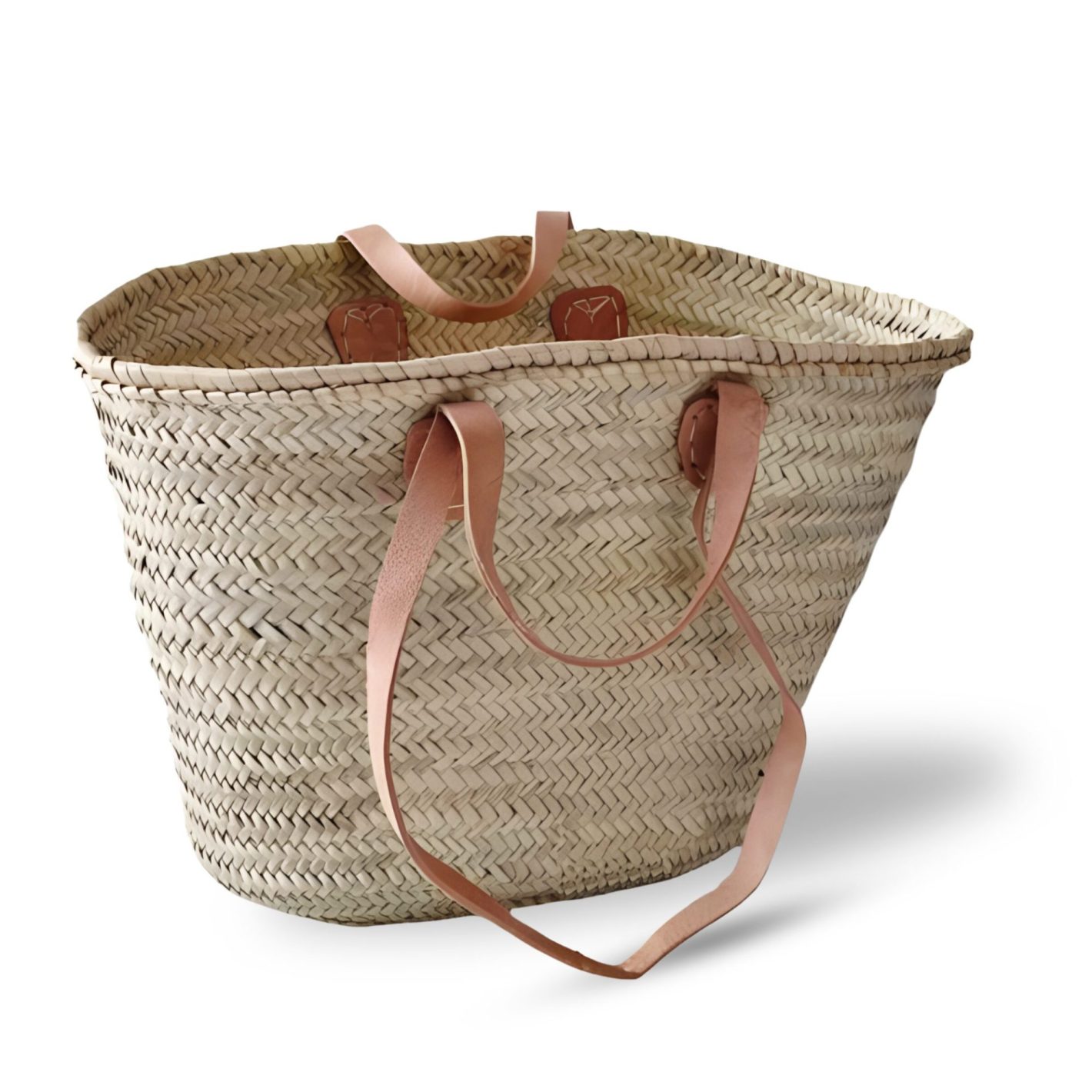 Authentic Moroccan Straw Basket Bag – Artisan Market Tote with Double Leather Handles