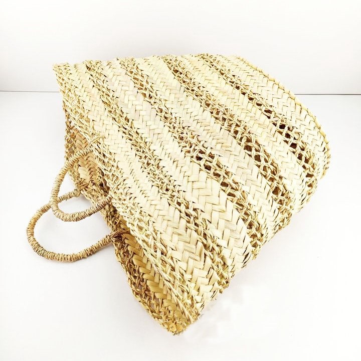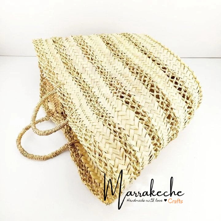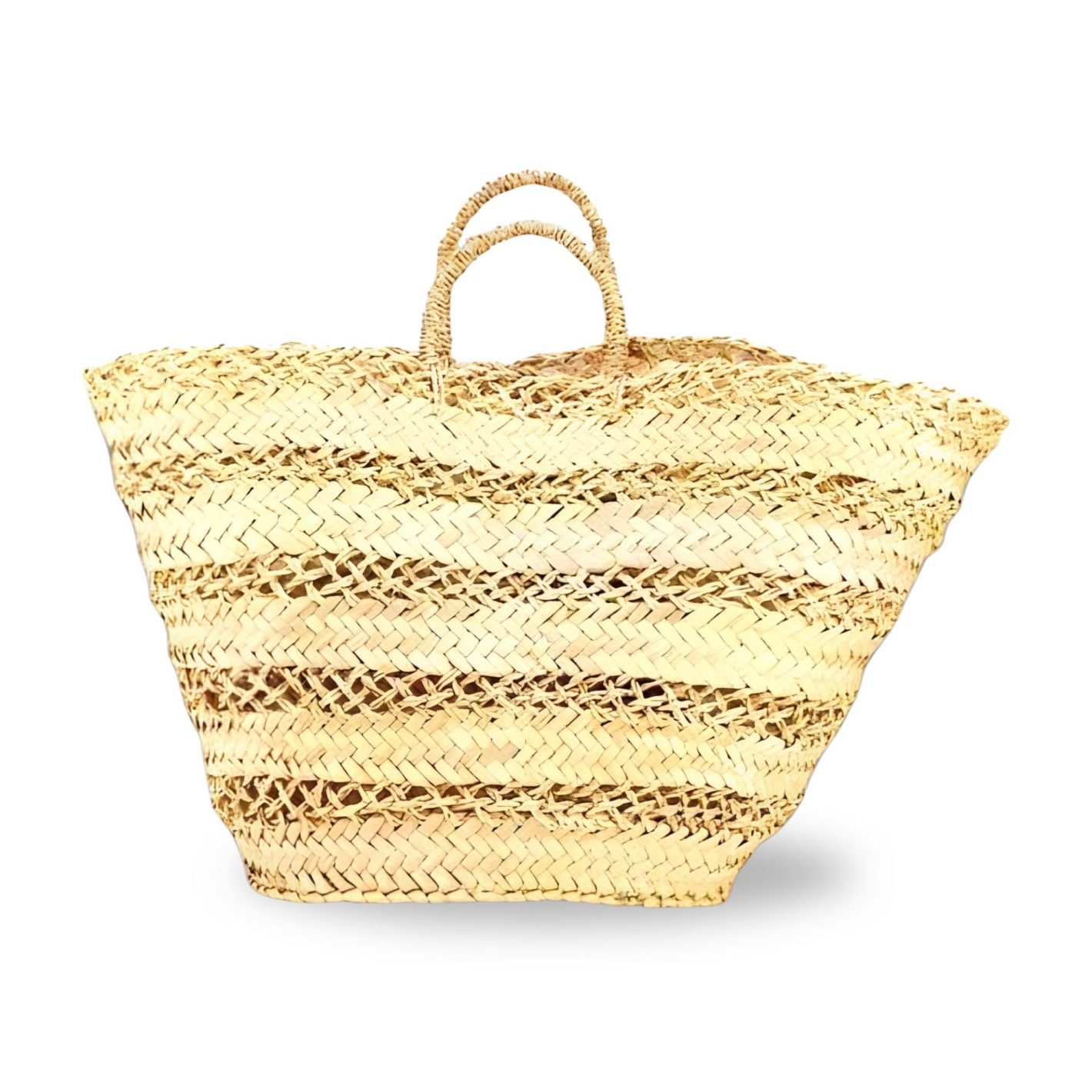 Embrace timeless elegance with our handwoven straw basket bag, where traditional Moroccan craftsmanship meets practical design. This versatile piece features a classic striped pattern and sturdy construction, making it the perfect companion for both everyday errands and beach adventures.
