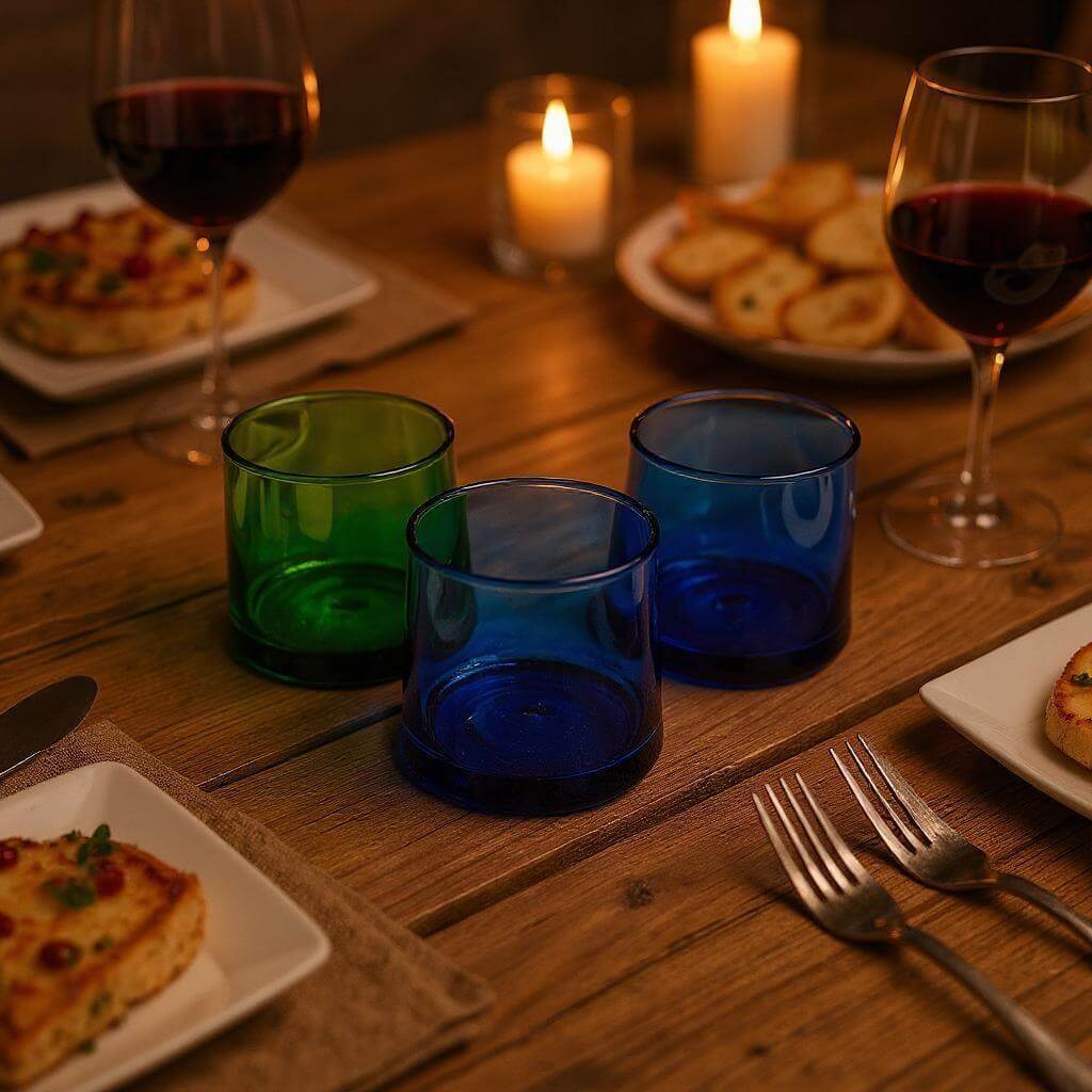 These handblown glasses are available for bulk orders and perfect for restaurants, cafes, and boutique hotels seeking distinctive beverage presentation. The recycled glass story resonates with eco-conscious guests, while the vibrant color palette creates Instagram-worthy table settings. Our wholesale program offers consistent quality across large orders while supporting traditional glass artisans and sustainable practices. Whether you’re launching a signature cocktail program or upgrading your wine service, these handcrafted glasses create memorable guest experiences. Contact our wholesale team for volume pricing, bulk discounts, and custom color selections for your brand.