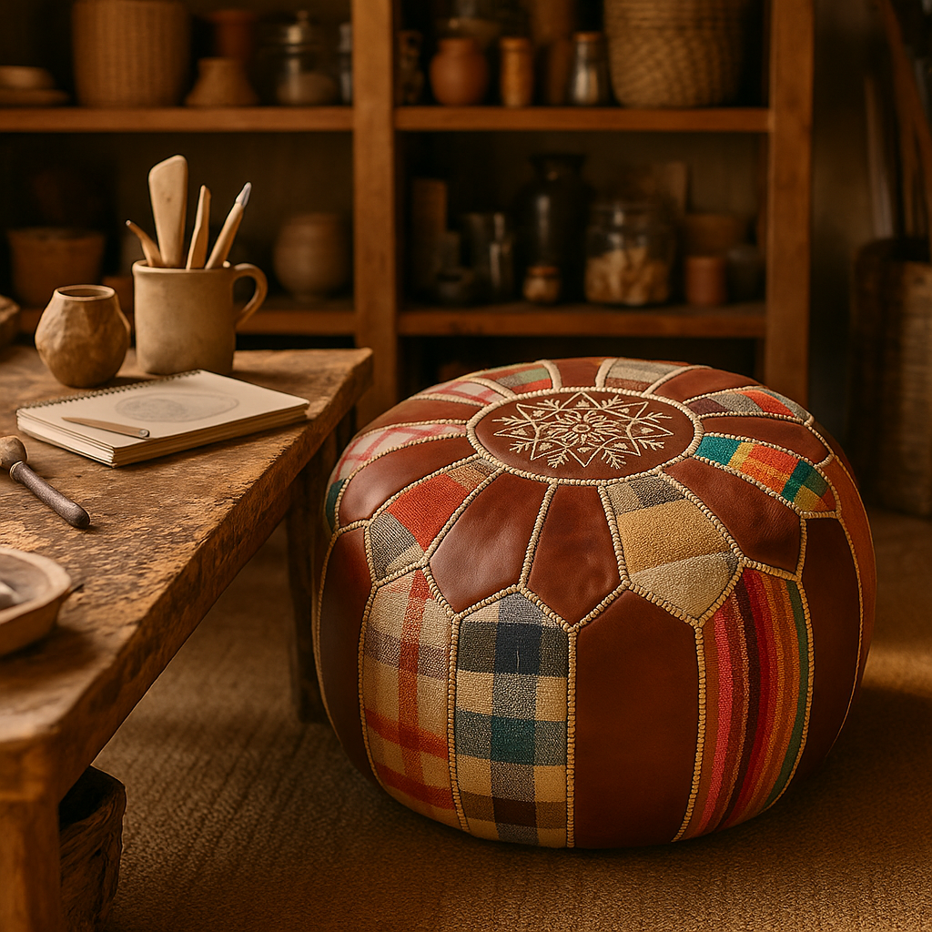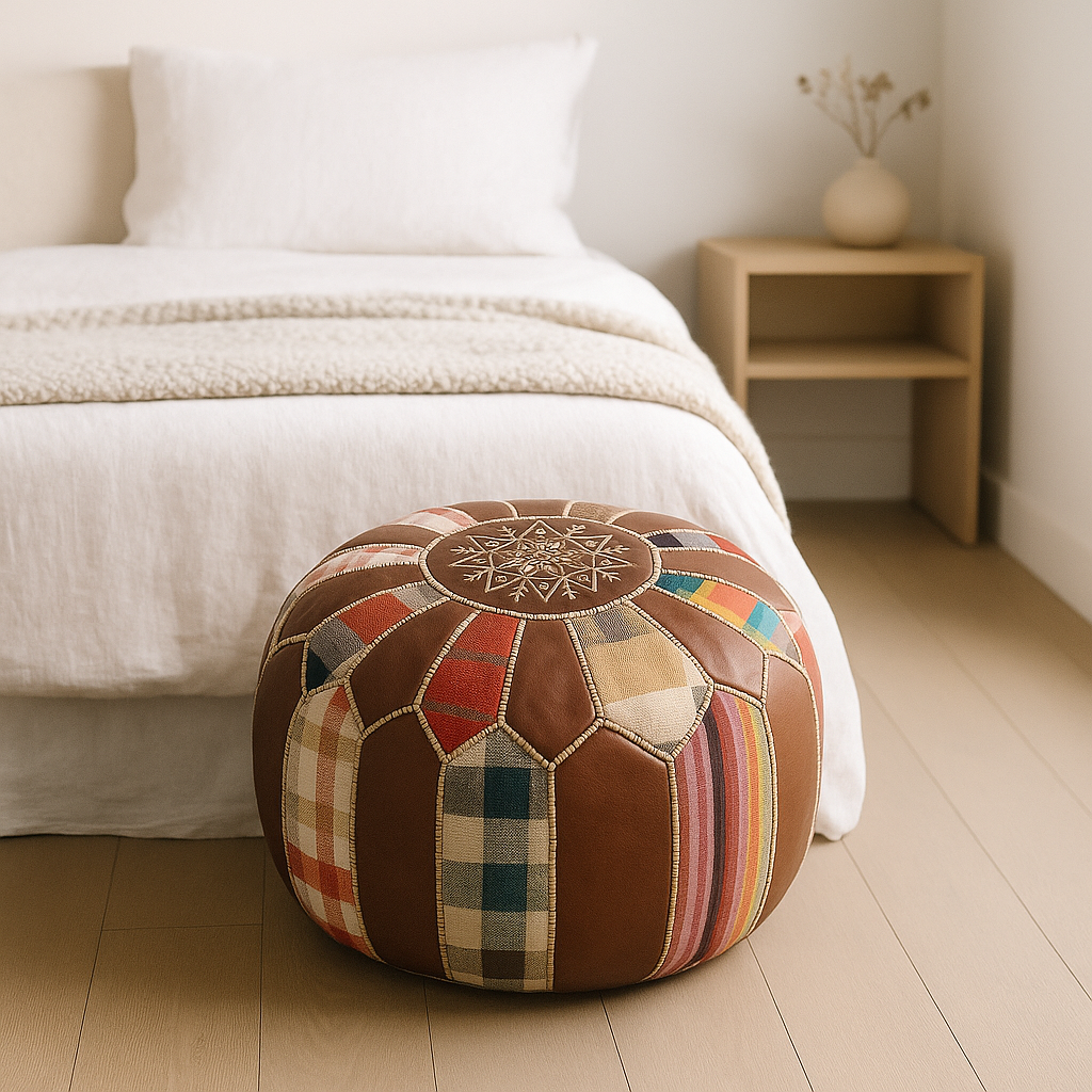 Keep your round leather pouf ottoman looking beautiful with proper care. For comprehensive maintenance guidance, explore our The Complete Guide to Caring for Moroccan Leather. If you’ve chosen an unfilled pouf, reference our detailed The Ultimate Guide on How to Fill Your Moroccan Leather Pouf.