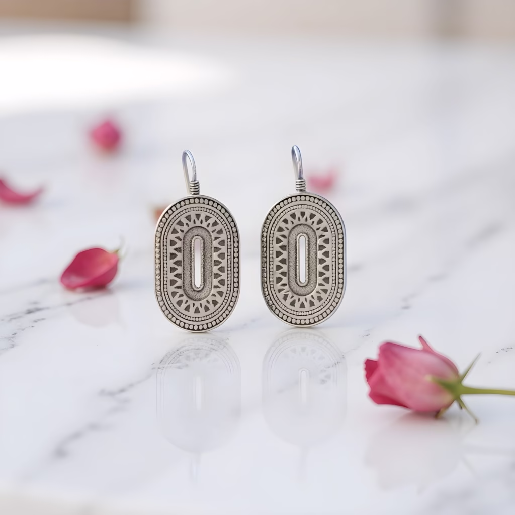 Each pair of silver oval earrings is meticulously crafted in 925 sterling silver with detailed traditional motifs. The oval shape features delicate patterns inspired by ancient Berber designs.