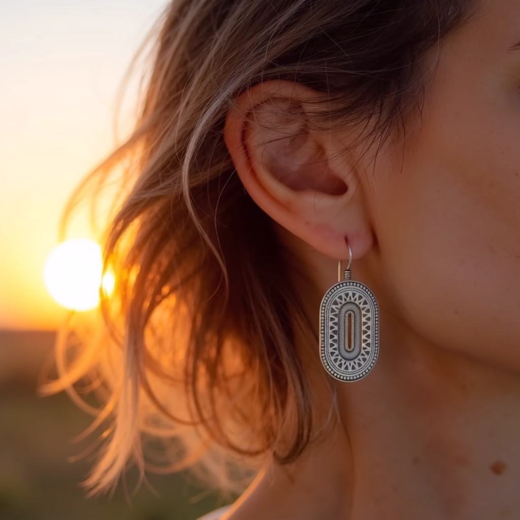 Embrace timeless elegance with our sterling silver oval earrings, featuring intricate Berber patterns handcrafted by skilled artisans.