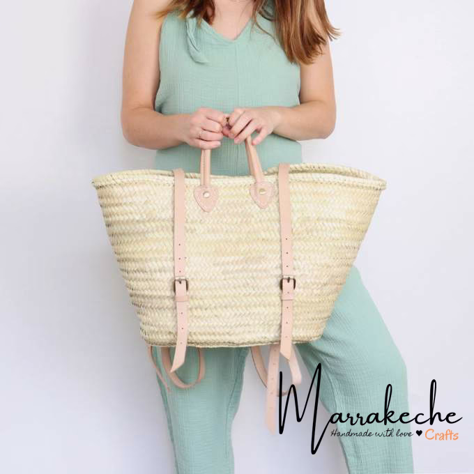 Experience ultimate versatility with our innovative straw backpack, featuring adjustable leather straps that transform from tote handles to comfortable backpack straps. This unique piece combines traditional Moroccan craftsmanship with modern functionality for the perfect summer companion.